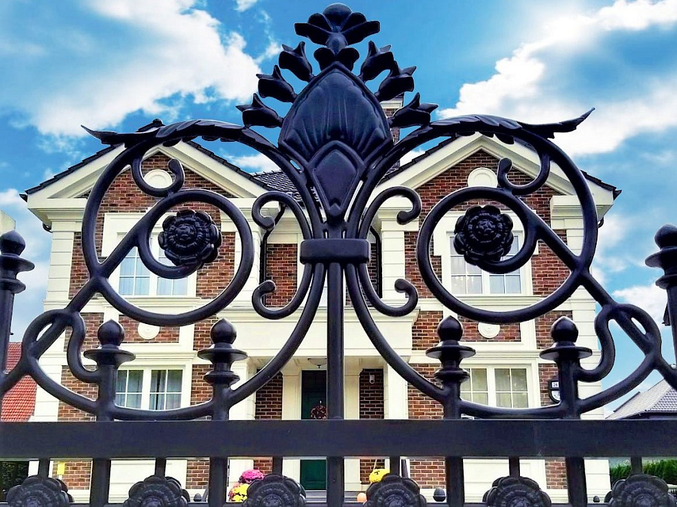 Алюминиевые конструкции, с деталями художественного литья из алюминия, выполненными по индивидуальному моделям и окрашенные полимером в 2 слоя.