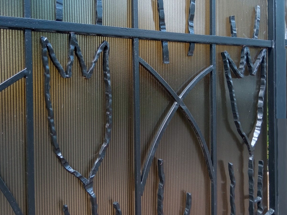 Металлические конструкции, с элементами металлической пластики, прошедшие дробеструйную обработку, покрытие цинкосодержащим составом Zinga (Бельгия) и окрашенные алкидной эмалью в 2 слоя.